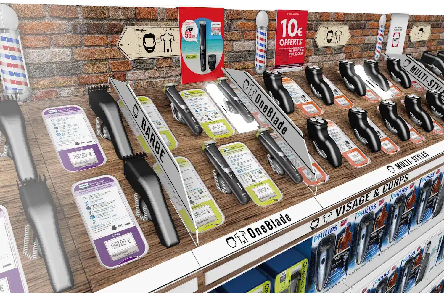 Initially, Philips sought a partner to handle the production of multi-material POS assets for a rollout in 40 stores. However, a store audit conducted by Altavia’s team revealed deeper issues in how the category was being presented and perceived at the point of sale. The grooming category lacked clarity, with insufficient guidance for customers comparing products by function, features, or usage.Recognizing the opportunity, Philips shifted scope from a basic execution to a strategic category reinvention, backed by design expertise and shopper insight.