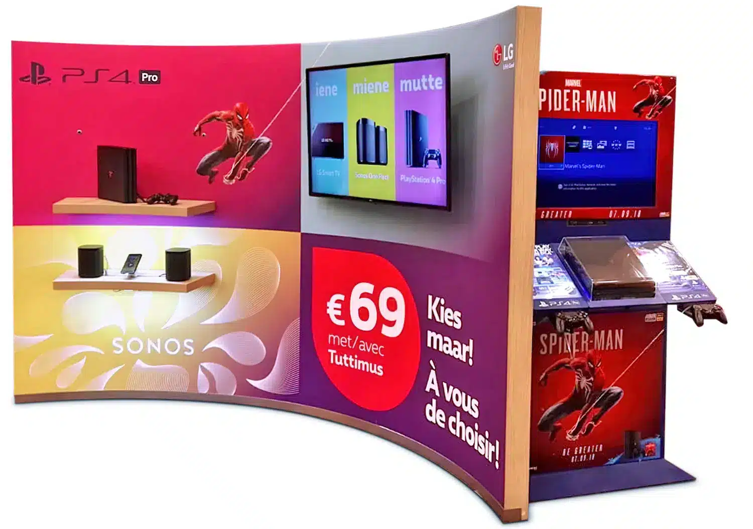 Founded in Belgium, Proximus holds a dominant position in the national telecom market, with operations extending internationally. Known for deploying the first 5G and fiber networks in the country, the brand has long relied on its retail network, comprising over 130 stores and thousands of touchpoints, to maintain proximity with its 7.5 million annual visitors. Over time, the shift toward digital services, eco-responsibility, and omnichannel customer journeys reshaped the expectations placed on physical stores.This evolution necessitated a full-spectrum transformation of Proximus’ retail ecosystem, from point-of-sale branding to immersive digital in-store experiences, while continuing to deliver strong commercial results across seasonal and national campaigns.