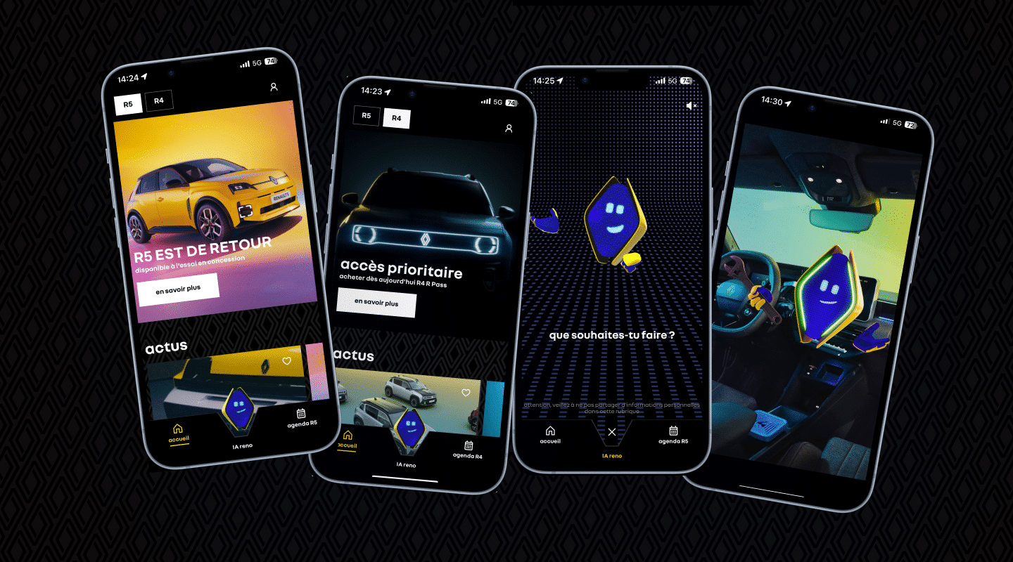 RENO, the future of mobilityThe result was Wt5 by Renault, a trailblazing platform available on Android and iOS, designed to engage users across 7 European countries. Central to the app’s success was Reno, Renault’s AI-powered avatar, created in partnership with OpenAI’s ChatGPT, offering personalized interactions and exclusive content. The app provided behind-the-scenes access to the Renault 5 and 4, priority pre-order passes, and even exclusive merchandise. This seamless integration into Renault’s digital ecosystem turned the teasing, reveal, and commercialization stages into a comprehensive and engaging customer journey.