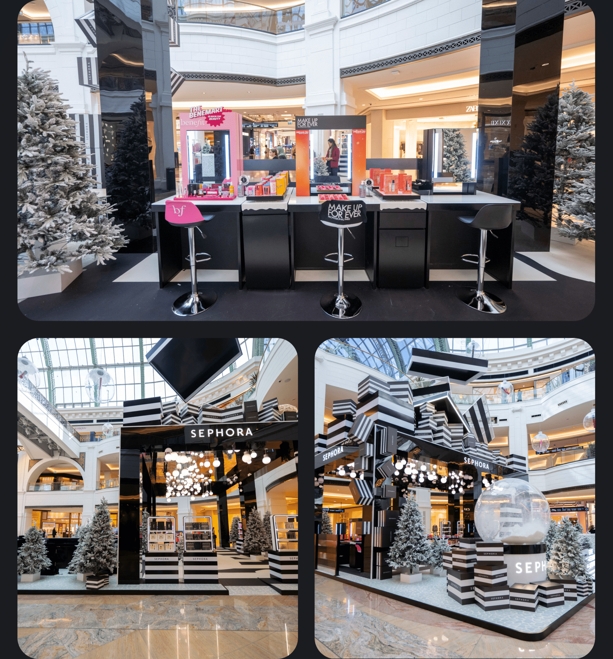 Combining creative vision, technical expertise, and operational precision, the campaign amplified Sephora’s retail presence and exceeded expectations:Speed & PrecisionBoth activations were successfully installed in two nightsBrand VisibilityThe campaign strengthened Sephora’s position as a leader in experiential retail.Foot Traffic IncreaseThe striking visual design drew in more shoppers, turning the pop-ups into high-traffic destinations.Sales UpliftThe activation contributed to higher sales, proving the power of immersive retail engagement.Social AmplificationThe bold, interactive setup generated organic social sharing, extending the campaign’s reach beyond the physical space.