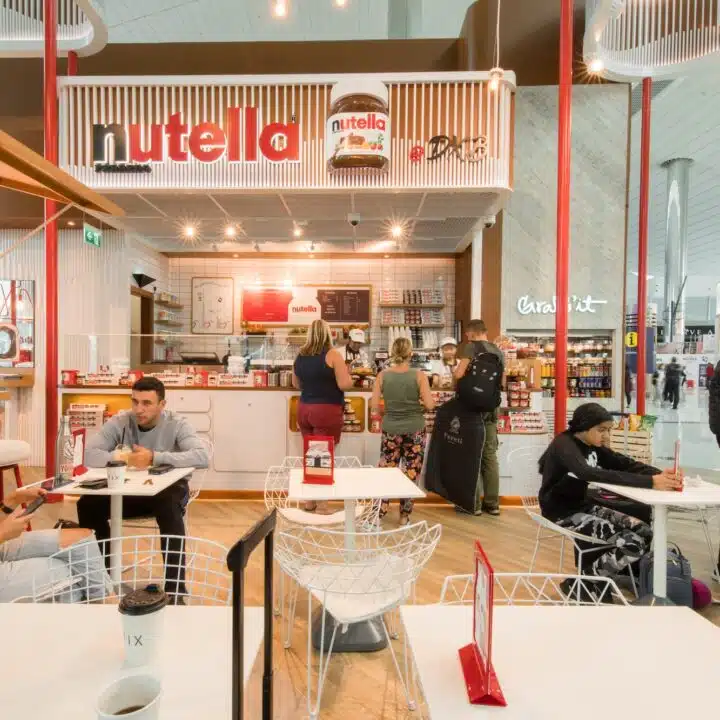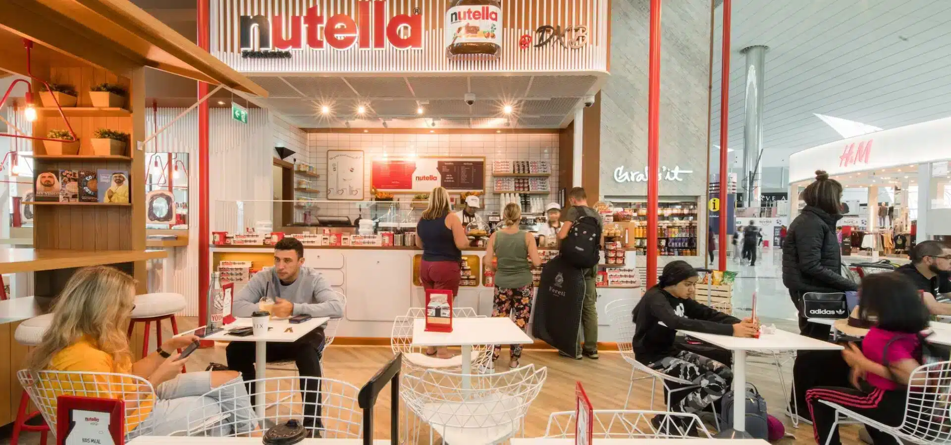 Concevoir et livrer le tout premier Nutella Café en aéroport, un espace brandé réunissant en parfaite harmonie offre retail et restauration.