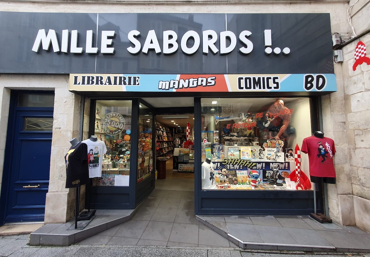 Mille sabords, librairie ouverte il y a 35 ans à la Rochelle, sait aussi créer l’événement régulièrement pour attirer du monde. Le lieu a su également se démarquer en devenant spécialiste de Tintin. On peut en effet y acheter des figurines et des BD que l’on ne retrouve nulle part ailleurs. « Nous vendons aussi beaucoup de figurines de mangas et Comics ainsi que des produits dérivés, ajoute Matthieu Dargenton. On vient aussi chez nous comme dans une boutique musée, pour l’effet WAOUH de tout ce qui est exposé. »